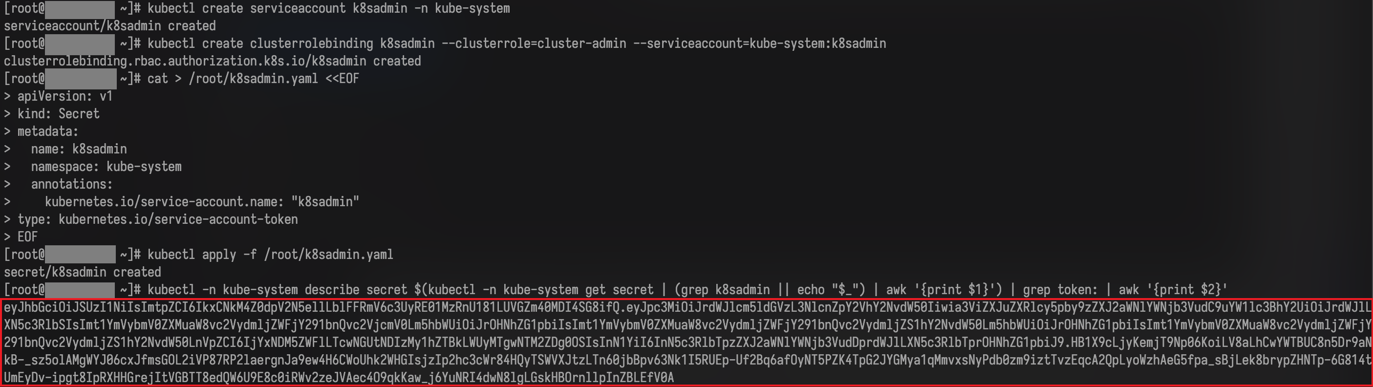 kubectl create clusterrolebinding k8sadmin --clusterrole=cluster-admin --serviceaccount=cpaas-system:k8sadmin
